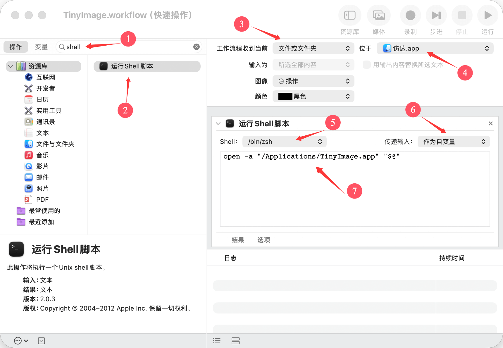 - 在流程中添加「运行 Shell 脚本」